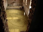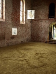 Overzicht van de expositie in het kerkje van Heveskes. Onder de rook van de chemische industrie van Delfzijl staat het kerkje als enige overgebleven van het dorp: geen preekstoel of banken, geen vloer en geen stucwerk. september 2008